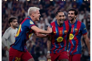 體育資訊1月12日訊 西超杯決賽,巴薩3-2擊敗皇馬,奪得冠軍。