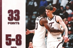 本場(chǎng)比賽,弗吉尼亞理工球員內(nèi)奧克利斯·阿夫達(dá)拉斯(Neoklis Avdalas)23投13中,三分8中5 ,拿到33分5籃板6助攻。他也是球隊(duì)自2022年亨特·卡圖爾之后,第一位在客場(chǎng)比賽拿到30+得分的弗吉尼亞理工球員。