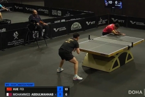 體育資訊1月16日訊 WTT多哈球星挑戰(zhàn)賽男單,薛飛3-0戰(zhàn)勝阿卜杜勒瓦哈卜,晉級32強。