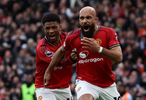 比賽開場(chǎng)僅2分鐘,B費(fèi)主罰角球精準(zhǔn)制導(dǎo),馬奎爾門前甩頭攻門,皮球重重砸在橫梁上彈出,曼聯(lián)險(xiǎn)些上演夢(mèng)幻開局;2分鐘后,年輕的阿萊恩在姆伯莫的高壓逼搶下出現(xiàn)回傳失誤,多虧門將多納魯馬反應(yīng)神速,及時(shí)出擊化解險(xiǎn)情。第21分鐘,曼聯(lián)中圈斷球發(fā)起反擊,B費(fèi)右路不停球斜傳,多古后點(diǎn)包抄小角度低射,又被多納魯馬奮力撲出;第32分鐘,羅德里后場(chǎng)回傳出現(xiàn)低級(jí)失誤,B費(fèi)斷球后送出斜塞,可惜姆伯莫啟動(dòng)稍慢半步,皮球被胡桑諾夫搶先解圍。