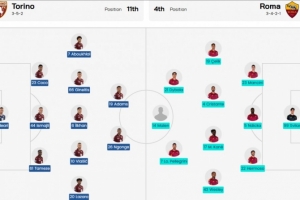 體育資訊1月19日訊 北京時間凌晨1點,意甲第21輪,都靈vs羅馬的首發(fā)陣容公布。