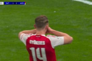 體育資訊1月21日訊 國米vs阿森納第84分鐘,約克雷斯弧線球破門,阿森納第84分鐘再下一城!比分變?yōu)榘⑸{3-1!