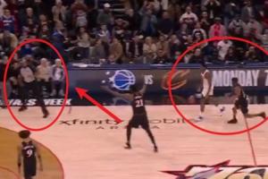 OG·阿努諾比持球就在眼前,恩比德轉(zhuǎn)身向裁判抱怨