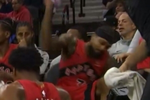 “很多人都認(rèn)為他應(yīng)該站起來道歉。我理解他的沮喪,他在比賽中摔倒得很尷尬,而且那是一場艱難的比賽,他們有很多失誤,最終沒能贏得比賽。但我不認(rèn)為這是正確的回應(yīng)方式。有人說他像三歲小孩一樣,確實(shí)如此,這種事情經(jīng)常發(fā)生在有小孩的家庭里。但我認(rèn)為這不是合適的反應(yīng)。他應(yīng)該對此道歉,但他沒有這樣做,沒有任何反應(yīng)。我不知道他當(dāng)時是怎么想的,但作為一個普通人,我認(rèn)為他應(yīng)該有所表示。他不應(yīng)該坐在那里看著大家清理,尤其是當(dāng)水濺到隊(duì)友臉上時。他應(yīng)該幫助清理,而不是讓別人的生活變得更加困難。也許這是因?yàn)樗浅壐缓?,覺得這些人理應(yīng)為他服務(wù)。但我們不應(yīng)該輕易下結(jié)論。他看起來非常沮喪,可能只是心情不好而已。”Donnie Freeman表示。