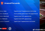 薩卡:各項(xiàng)賽事13次出場(chǎng) 0球