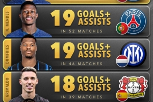 體育資訊11月10日訊 Score90統(tǒng)計了2025年五大聯(lián)賽后衛(wèi)在俱樂部+國家隊比賽中參與進(jìn)球的數(shù)量,并列出榜單。