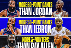 60+得分場(chǎng)次比喬丹多;