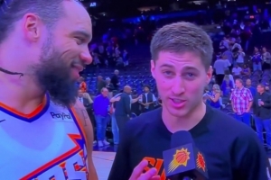 賽后采訪,吉萊斯皮打斷了狄龍的場邊采訪,同時道:“現(xiàn)在告訴所有人,我們隊里有兩個全明星。這個家伙是全明星——把你們手機(jī)都掏出來,開始投吧。”