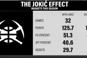 有約基奇 32場場均125.7分29.7助 命中率51.3% 三分命中率40.6%