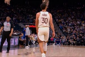 庫里在2+1后不舒服走到場邊,回了替補(bǔ)席,最后回了更衣室