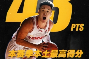 賀希寧本場(chǎng)狀態(tài)神勇,進(jìn)攻端幾乎無(wú)所不能,出場(chǎng)35分鐘,26中14,三分13中6,罰球11中9,爆砍生涯第二高分的43分(生涯最高分44分),外加4板2助3斷。
