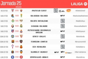 體育資訊2月2日訊 西甲官方公布了聯(lián)賽第25輪各場具體開球時間(北京時間):