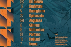 32-米林科維奇-薩維奇、22-迪洛倫佐、13-拉赫馬尼、4-布翁喬爾諾、37-斯皮納佐拉、99-安古伊薩、6-吉爾莫、8-麥克托米奈、21-波利塔諾、19-霍伊倫、7-內(nèi)雷斯