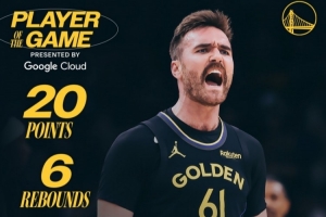 賽后勇士官方發(fā)布本場最佳球員數據海報,斯潘塞當選。