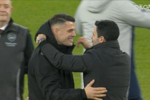 體育資訊02月08日訊 英超第25輪,阿森納3-0完勝桑德蘭。賽后轉(zhuǎn)播鏡頭拍到,阿森納舊將、現(xiàn)桑德蘭隊(duì)長扎卡與阿爾特塔親切熱聊。