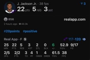 本場比賽,爵士新援小賈倫·杰克遜首秀表現(xiàn)不錯,出場25分鐘17投9中,三分5中2、罰球2中2拿到22分5籃板3助攻2搶斷,正負(fù)值+6。