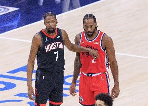 首節(jié)比賽,兩隊核心杜蘭特和倫納德都沒有太多發(fā)揮,其中杜蘭特3中0,三分球2中0,沒有得分入賬,僅拿到2籃板2助攻的數(shù)據(jù);倫納德4中1,三分球1中0,拿到2分1籃板的數(shù)據(jù)。
