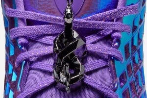 鞋帶處配有一個(gè)黑曼巴配飾,同時(shí)纏繞的形態(tài)則呈現(xiàn)一個(gè)數(shù)字8的形態(tài)。