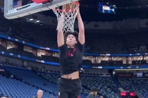 GIF-楊瀚森賽前熱身各種扣