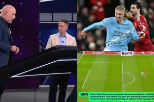 “所以,我們必須回到最初的犯規(guī)點(diǎn),也就是索博斯洛伊拉拽哈蘭德的那次犯規(guī)。那是在禁區(qū)外阻止了一次明顯的得分機(jī)會(huì),所以裁判判罰了任意球,索博斯洛伊被紅牌罰下。最終,VAR的判罰顯然是正確的?!?/p>