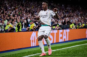 本場比賽,維尼修斯為皇馬打進了鎖定勝局的進球。進球后,維尼修斯再次來到角旗區(qū)用舞蹈的方式慶祝。
