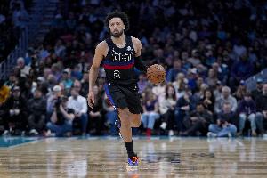 本場(chǎng)比賽,活塞當(dāng)家球星凱德·坎寧安狀態(tài)火熱,發(fā)揮出色,屢屢依靠個(gè)人能力爆破對(duì)手防線??上缭缦萑敕敢?guī)困擾,并在末節(jié)犯滿離場(chǎng)!