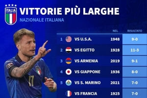 體育資訊11月14日訊 北京時間11月17日凌晨,意大利將在世預賽最后一輪比賽中主場對陣挪威,意大利此役需要至少凈勝挪威9球,才能直接出線。德國轉(zhuǎn)會市場列出了意大利隊史最大比分勝利榜單。