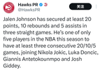 杰倫約翰遜連續(xù)三場(chǎng)20+10+5! 趕緊安排個(gè)全明星