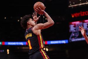 此役,杰倫·約翰遜出戰(zhàn),18中8,其中三分8中3,罰球6中6,得到25分8籃板9助攻3搶斷1蓋帽,正負(fù)值-7。
