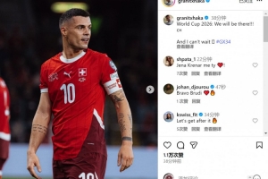 此役扎卡為瑞士首發(fā)出戰(zhàn),賽后他在社交媒體上曬出比賽照片,慶祝球隊(duì)出線,配文:“2026年世界杯——我們來了!我已迫不及待。”