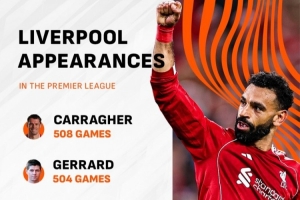 此役是薩拉赫代表利物浦出戰(zhàn)的第300場(chǎng)英超,英超出場(chǎng)次數(shù)位列利物浦隊(duì)史第五。