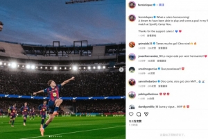 費(fèi)爾明也在賽后通過(guò)社媒曬出自己的激情慶祝照,并配文:“多么精彩的巴薩回家之戰(zhàn)!能在諾坎普球場(chǎng)出場(chǎng)并進(jìn)球,簡(jiǎn)直像做夢(mèng)一樣!感謝巴薩球迷的支持!”