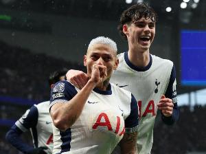 體育資訊11月24日訊 英超第12輪的北倫敦德比,熱刺在酋長(zhǎng)球場(chǎng)挑戰(zhàn)阿森納。本場(chǎng)比賽,在球隊(duì)0-3落后的情況下,里沙利松為熱刺打進(jìn)1球,而且是一粒驚天吊射。