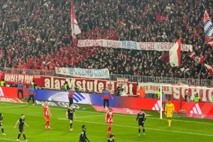 體育資訊11月24日訊 拜仁在本輪德甲焦點(diǎn)戰(zhàn)6-2逆轉(zhuǎn)弗賴堡,拜仁死忠“南看臺”在比賽中打出橫幅,侮辱同城死敵慕尼黑1860的主席格爾諾特·曼格是“婊子養(yǎng)的”。
