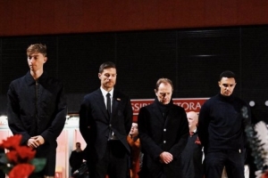 體育資訊11月4日訊 北京時間周三凌晨的歐冠聯(lián)賽階段第4輪比賽,皇馬將在安菲爾德挑戰(zhàn)利物浦。本場比賽之前,皇馬主帥阿隆索、后衛(wèi)赫伊森和阿諾德、公關(guān)總監(jiān)布特拉格諾一行來到若塔紀(jì)念碑前,阿隆索獻(xiàn)上鮮花向這名7月因車禍不幸離世的利物浦前鋒表達(dá)敬意。