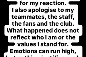 “發(fā)生的事情并不能反映我的為人,也不能反映我所代表的價(jià)值觀。情緒激動(dòng)在所難免,但沒(méi)有什么理由可以為這種行為辯護(hù),我保證這種事不會(huì)再發(fā)生了?!?/p>