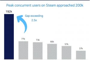 開發(fā)商 Shift Up 官方圖表顯示,《劍星》Steam 最高同時(shí)在線玩家數(shù)一度曾達(dá)到 19.2 萬人,在曾推出 PC 版本的 PlayStation 獨(dú)占游戲中位列第一。(第二名是《對(duì)馬島之魂》7.7萬人)