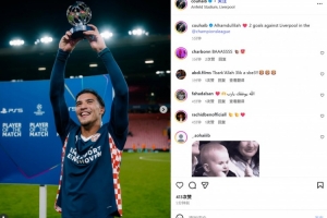 歐冠官方也在賽后將其評選為本場MVP,他也在賽后通過社媒曬出自己高舉MVP獎杯的照片并配文:“真主至大!??在歐冠對利物浦打進(jìn)2球!”