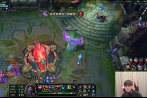 團滅對手后JackeyLove放大看蒙多R技能特效,隨后進泉水洗澡