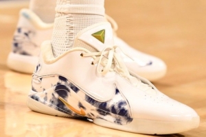 重回洛杉磯的安東尼·戴維斯腳穿勒布朗22球鞋進行熱身。