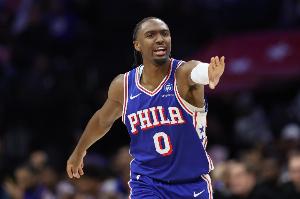 本場比賽第一個加時最后0.3秒,老鷹落后76人2分,杰倫·約翰遜造成犯規(guī)搏得兩罰,裁判吹罰76人挑戰(zhàn),并宣布挑戰(zhàn)失敗,時間回表到1.1秒,但隨又表示不是76人的挑戰(zhàn),又把表調(diào)回到了0.3秒,杰倫·約翰遜兩罰全中追平比分,雙方進(jìn)入第二個加時。