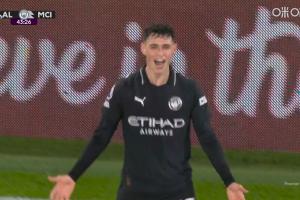 體育資訊12月03日訊 曼城vs富勒姆第44分鐘,福登世界波破門,此時(shí)比分變?yōu)槁?-0領(lǐng)先!