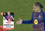 西甲第19輪,巴塞羅那主場3-1擊敗馬德里競技,此役打入一球的巴薩前鋒拉菲尼亞當選西甲官方全場最佳球員。