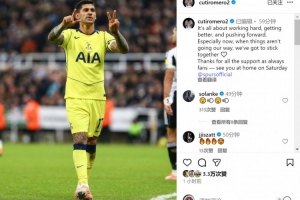 羅梅羅社媒曬出比賽照片,配文:“一切都關(guān)乎努力拼搏、不斷進(jìn)步、勇往直前。尤其在當(dāng)下,當(dāng)事態(tài)不如意時,我們更要團(tuán)結(jié)一心??”