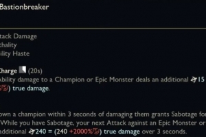 對英雄和史詩級野怪造成(15+75%穿甲)的真實傷害,冷卻時間20秒。