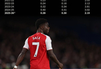 TA:薩卡對陣切爾西時(shí)收獲了近一年來的首次英超助攻,但這并不意味著他期間在創(chuàng)造力方面毫無建樹。