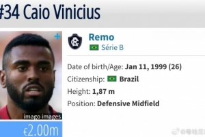 根據(jù)德轉(zhuǎn)顯示,球員在場上司職后腰,上賽季共出戰(zhàn)了28場巴乙聯(lián)賽,打進5球助攻2次,目前德轉(zhuǎn)身價為200萬歐。