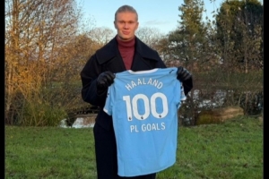哈蘭德本人更新社媒,曬出自己的英超百球曼城特制紀(jì)念球衣。