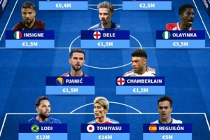 中場:皮亞尼奇(150萬歐)、張伯倫(150萬歐)、因西涅(150萬歐)、阿里(150萬歐)、奧拉因卡(350萬歐)
