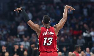 熱火中鋒阿德巴約出戰(zhàn)9分18秒,3投全中(三分1中1),拿到7分4籃板1蓋帽,正負(fù)值+2。